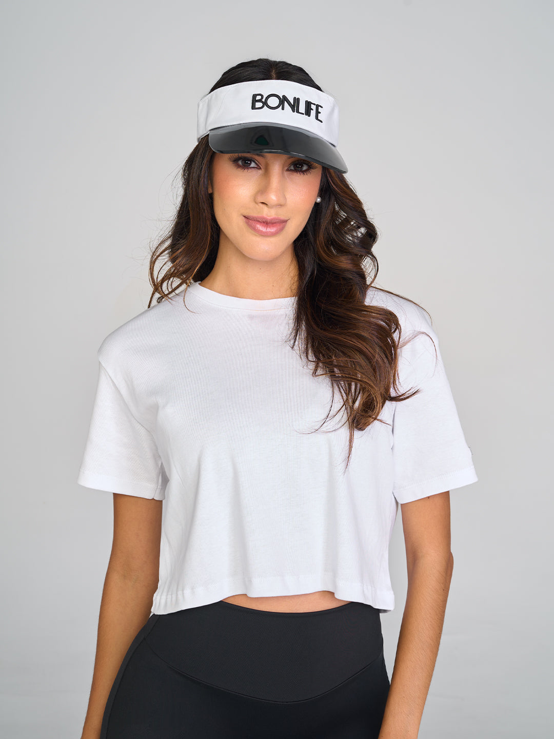 Camiseta crop de silueta urbana y manga corta, con detalle en aplique PVC que aporta un toque moderno y vanguardista. Diseñada para complementar tus looks deportivos y casuales con estilo, comodidad y actitud LUXOR STORE.