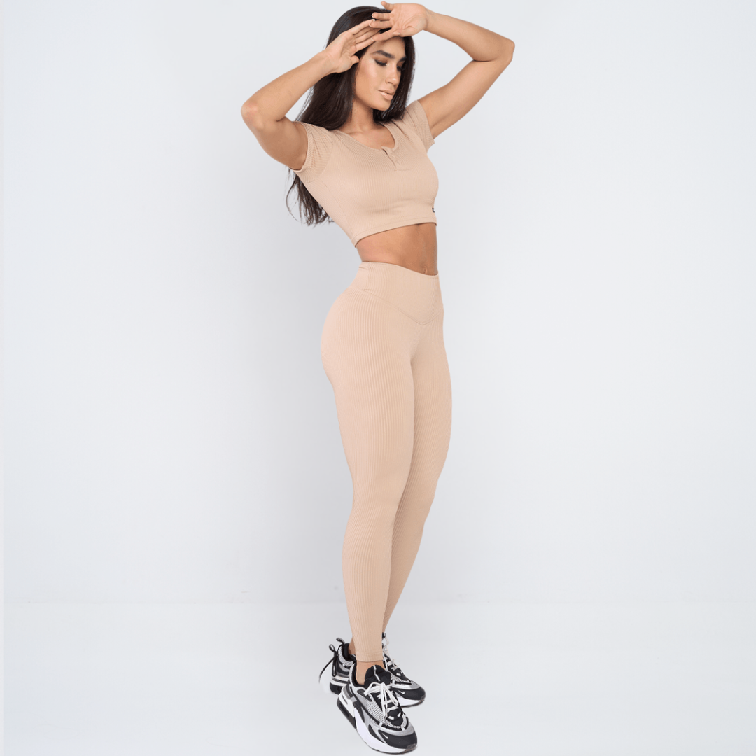 2544 - Leggings con Pretina Alta y Silueta en V Estos Leggings con Pretina Alta están diseñados para realzar tu figura con una silueta en V que acentúa tus curvas de manera favorecedora. Confeccionados en tela texturizada acanalada, ofrecen un ajuste cómodo y un acabado moderno que destaca. La combinación de la pretina alta y el diseño en V proporciona soporte adicional y una apariencia estilizada, haciendo de estos leggings la opción ideal para un look elegante y contemporáneo.