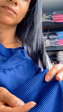 8681 - Crop Top Manga Corta con Tela Texturizada acanalada y Abrochaduras de Acero Inoxidable.